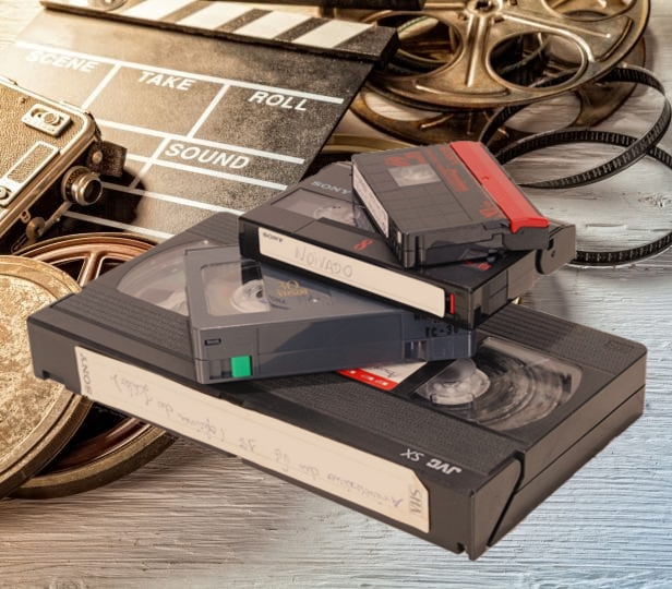 Convertemos para arquivo digital, fitas VHS, VHS-C, Super VHS, Hi-8, Mini-DV, Betacam e rolos de filmes Super 8, 8mm e 16mm.